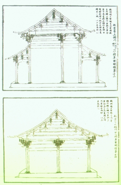 北宋《营造法式》书中的建筑图样(左图和上图)