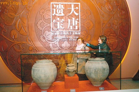 昨日,何家村窖藏出土文物展吸引了外国参观者。图/侯智