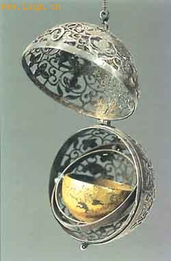 这种香囊分里外两层,有三道箍,不论外部球体如何转动,中间的香盂总是保持平衡,里面燃烧着的香料不会撒出。据专家介绍,唐代香囊的持平装置完全符合陀螺仪原理,这一原理在欧美是近代才发明并广泛应用于航空、航海领域,而我们中国最晚在1200年前的唐朝时就已掌握了这项原理。(新闻晚报 詹皓)