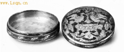 鎏金双鸾纹银盒 装饰方法受萨珊徽章式纹样影响