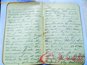 在现场唯一一张杰伊的发黄照片上,约翰的外祖父年轻时身材高大英俊。记者在翻阅杰伊的日记发现,杰伊的笔迹工整、记载细腻,还特别将与日记有关的人物的一些名片夹在日记本里。