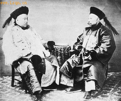 头戴花翎的清代八旗官员