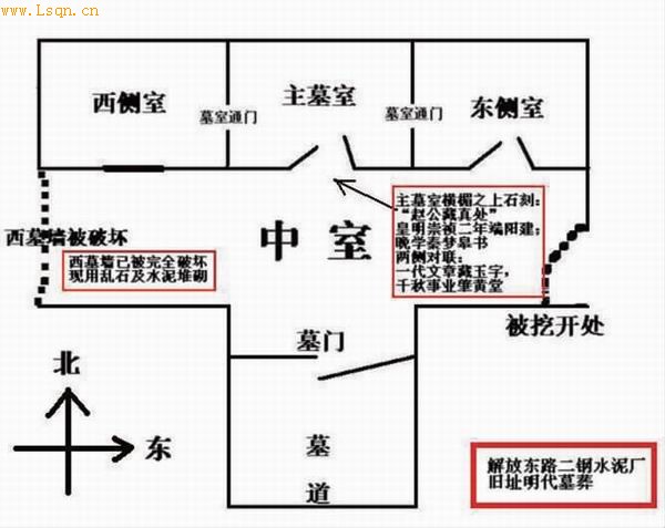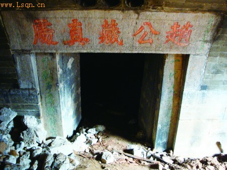 4月14日,济南解放东路二钢水泥厂旧址建筑工地,施工人员在挖掘土方时,发现了一座规模较大的明崇祯二年砖砌多室墓。由于墓室早年被盗,没有发现墓志铭,所以无法确定墓主人的身份。但是墓室门楣上“赵公藏真处”的题额和“皇明崇祯二年端阳建”的落款等相关文字,却为我们隐约透露了这座神秘墓葬背后隐藏的秘密。