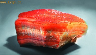 于先生的肉形石和台北故宫博物院的“东坡肉”均为玛瑙质矿石。于先生收藏的这块肉石,经北大宝石鉴定中心检测,为隐晶质结构石英岩石矿物,密度2.6每立方厘米,偏光检查为非均质集合体,系玛瑙原石。