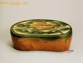 磁州窑三彩牡丹花纹腰形枕(金)