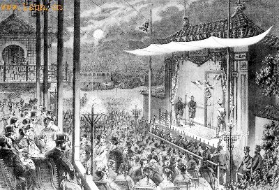 1867年巴黎世博会中国剧场夜场演出盛况(版画)