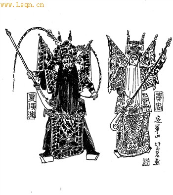 《定军山》是一出“快节奏”的戏,黄忠边歌边舞行云流水畅快淋漓,刻画了一位斗志昂扬,一往无前的老将军形象,是“伶界大王”谭鑫培(1847—1917)的代表作。谭鑫培结束了早期老生直腔直调的唱法,创清新婉约的谭腔风靡一时,以至“无腔不谭”,但后学者并不满足作“模仿秀”,又创出前后四大须生各自的流派,把老生行当推到顶峰。清光绪年间北京第一家照相馆——丰泰照相馆于1905年请谭鑫培拍摄了《定军山》选段,成为中国第一部电影片,《定军山》从老谭到小谭(正岩)传至六代,可算是一部京剧演出史。