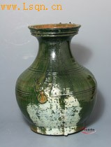 汉 绿釉铺首弦纹盘口壶
