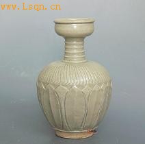 北宋 邵武窑青白釉浮雕莲瓣水波弦纹盘口瓶