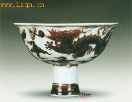 景德镇窑釉里红龙纹高足碗(明)