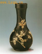 吉州窑黑釉带铭剔梅花纹瓶(南宋)
