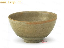 高5.1厘米,口径9.7厘米,底径3.7厘米。 直口,弧壁,圈足。灰白胎,黄褐色釉,釉面开裂,底心釉呈天青色,圈足、外底及外壁近足处无釉露灰白胎。 此杯底心的天青釉色类似于宋代钧瓷的釉色。这种器物曾在重庆清溪窑窑址发现。