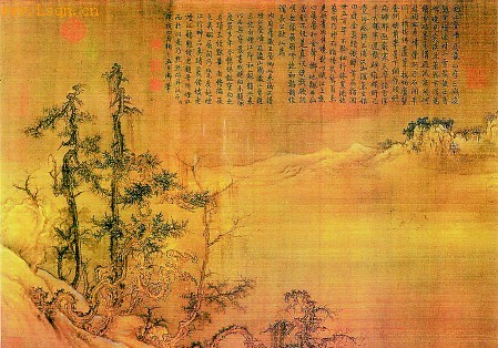 《渔村小雪图》就是他流传有序的一幅佳作,最能代表王诜山水画的艺术特色。面对他的画作,今天的我们读来,仍能感觉到那种置身闹市、却又能够放得下喧闹的独有境界。