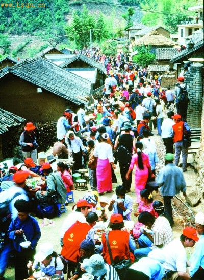 布朗族山寨的长席宴 胡小平摄