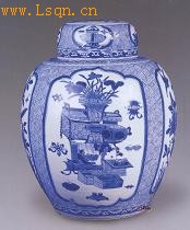 清康熙 景德镇窑青花花鸟博古图盖罐