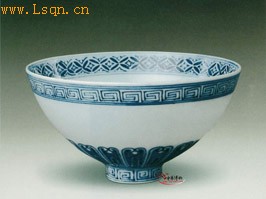高8.5厘米、口径16.2厘米、底径4.2厘米。 此碗直口,腹部渐收呈鸡心状,腹深足小,不如永乐器型秀丽,略显丰满。器外口边足边分饰回纹一圈,腹部留白,近足处绘细长菊瓣纹,器里口边绘钱形锦纹一圈,碗心以贯套花纹、缠枝花卉、点纹等构成圆形主题画面,口边与碗心的青花纹饰之间亦留白,与外腹相对映。圈足中间书“大明宣德年制”六字两行青花楷书款,为宣德青花瓷器的典型器物。