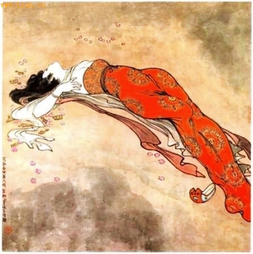她哪里会真正地拥有幸福?唐初,其祖父被杀,十岁其父亲病故,此后,她便寄人篱下。落花迎风的命运,在遇见李隆基儿子李瑁之后,才春风回暖。她欣喜地嫁了,嫁给心爱的人,总算是嫁得琴瑟和鸣。然而,61岁的公爹李隆基好色,居然悖弃伦常,想尽办法,将27岁的她据为己有。她被生生地与挚爱的夫君拆散,成为一个老色鬼的玩物。即使赐她一顶贵妃的凤冠,又哪里遮得住她心头的一腔幽怨?那些用妙笔书写李隆基杨玉环的“旷世恋情”的文人墨客,又哪里懂得她心里的疼痛与孤寂?我想,她的幸福,其实只是世人想像中的幸福,是被人提亮了颜色的幸福。这个弱女子,一定常常羡慕宫墙外面的飞燕子、睡鸳鸯,一定希望自己是布衣荆钗的民间女子,与相爱的那人一起,享受平畴浅草、布衣素食的日子。如此,也能活出个寻常的好来。