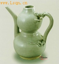 元 景德镇窑青白釉螭龙纹葫芦形执壶