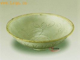 乐平窑青白釉划花莲花纹碗(元)