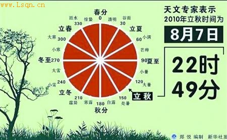 天文专家称,地球与太阳的角度每运行15度为一个节气,今年立秋在8月7日。