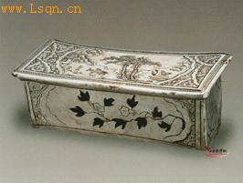 金 磁州窑白釉褐彩人物故事纹长方枕
