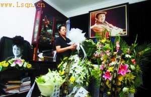 昨日记者在欧阳山尊家中看见,简易灵堂正中的遗像,家属选择了1994年其在北京人艺举办的研讨会上拍摄的半身像,哀乐也并非通常使用的曲目,而是贺绿汀的《胜利进行曲》。欧阳山尊的妻子徐静媛告诉记者,之所以用这首曲目是遵照欧阳山尊生前的遗愿。