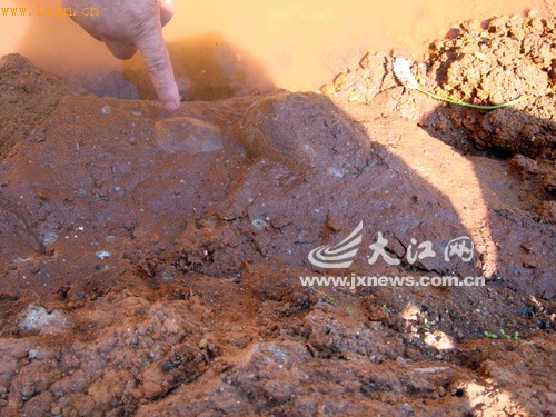 高安市祥符镇莲花村村民胡大业为了建新房,在宅基地附近挖了一口水塘取水。12日,当他挖到水塘下部的红砂岩层时,发现一块红砂岩上有4个像蛋一样的东西,遂向有关部门报告。经当地文物部门人员查看,确定这是4枚蛋化石,但属于哪类型古生物遗留、距今已有多少年等,有待专家进一步论证后公布。目前,高安市文物部门已派出专业技术人员赴现场进行抢救性清理保护。