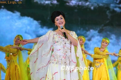 7月17日晚,纪念中国文联成立六十周年“百花赋”文艺晚会在人民大会堂召开。新老一辈表演艺术家共同演绎经典老歌,庆祝中国文联走过了与新中国同繁荣、共发展的六十年。 中新社发 王保胜 摄