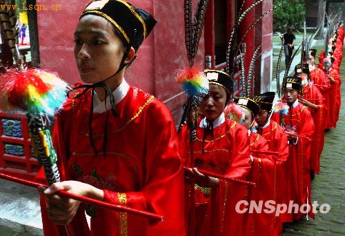 图为山东曲阜隆重举行《孔子世家谱》续修告成颁谱大典仪式。中新社发 宋吉河 摄