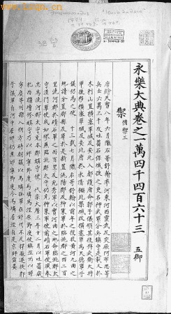 图为永乐大典残卷,现藏国家图书馆,上面可看见外国收藏机构的标识。