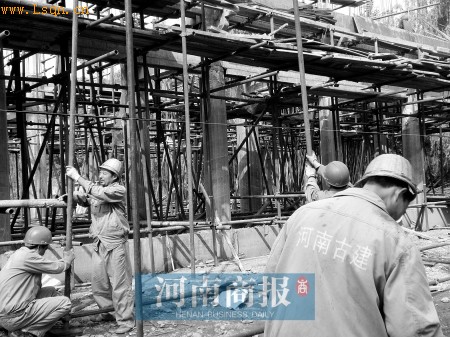 昨日下午,记者来到位于江油市文风路的重建李白纪念馆施工现场。百余名来自河南各地的基建工人正忙得热火朝天,各处重建古建筑的框架结构已现雏形。