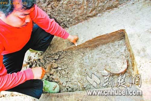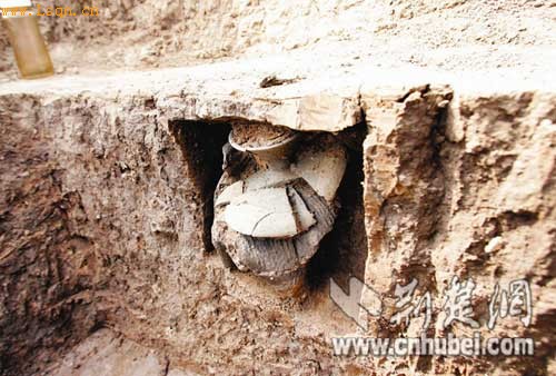 近日,在距襄樊高新区韩岗村的韩氏家族墓葬一百多米处,考古人员经连日发掘又发现了一批墓葬,初步判断这些是春秋时期的邓国墓葬。