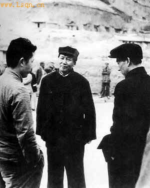 毛泽东与周扬(左)等在延安