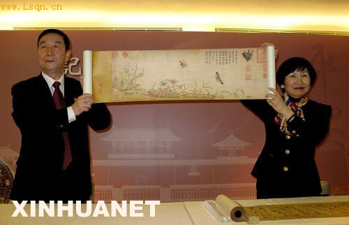 资料图片:3月2日,郑欣淼(左)与周功鑫共同展示故宫博物院赠送的宋朝赵昌的《写生蛱蝶图》复制品。当日,故宫博物院院长郑欣淼与台北故宫博物院院长周功鑫在台北故宫就两岸故宫加强合作等进行了会谈,并就实质性合作达成八项共识。新华社记者王妍摄