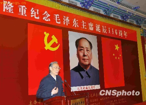 12月22日,由中国萧军研究会、中国毛泽东诗词研究会和中国延安精神研究会共同主办的“毛泽东诞辰一百一十六周年”纪念活动在北京全国政协礼堂举行。毛泽东亲属、生前身边工作人员以及专家、学者三百余人出席纪念会。中新社发潘旭临 摄