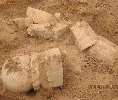 出土的华表宝顶保存完好,华表身残为三截,但棱柱上的线刻画清晰可见,保存完好。该华表,为八棱柱身,棱宽46.5公分,华表直径为1.1米,总长为8.01米。另外,还发现了残石人一件。此次发现,必将为唐景陵的研究提供了新的实物依据,尤其是唐末的葬制文化研究提供了重要资料。
