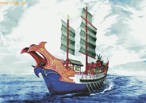 艺术家设想的遣唐使船气势恢宏。(日本新华侨报网图片)