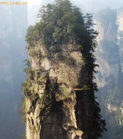 “南天一柱”为张家界“三千奇峰”中的一座,位于世界自然遗产武陵源风景名胜区袁家界景区南端,海拔高度1074米,垂直高度约150米,顶部植被郁郁葱葱,峰体造型奇特,垂直节理切割明显,仿若刀劈斧削般巍巍屹立于张家界,有顶天立地之势,故又名乾坤柱。