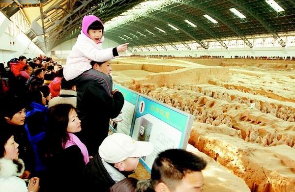 据介绍,由于近年福(州)银(川)等多条西安到周边城市的高速公路的开通,特别是中国中西部地区第一条高速铁路——郑西客运专线2月6日的正式运营,为陕西文物景区的短线旅游和自驾旅游提供了便利的交通条件。为此,秦俑博物馆作好充分的接待工作,游客参观秩序井然,实现了“文物安全,游客满意”的预期目标。