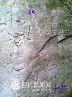 3月7日记者从有关方面获悉,3月5日上午,宜宾县复龙镇一群众向记者报料:在该镇犀牛村“三十六臂”半山腰的“箱子石”旁发现了一副生殖图,线条轮廓清晰可见。