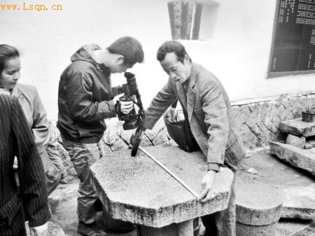 昨天,记者也随便捡了一块小石头敲击桌面,果真发出“当当当”犹如敲击在金属上的声音。随后又在另一普通石桌上敲击,只听到很沉闷的石块与石头的撞击声。据当地人称,如果摆放位置更好一些,石桌会发出犹如敲击编钟的声音。
