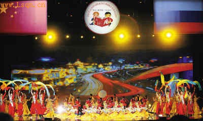 3月23日,俄罗斯“汉语年”开幕式在莫斯科克里姆林宫举行。图为中国演员在莫斯科举行的俄罗斯“汉语年”开幕式上表演舞蹈。