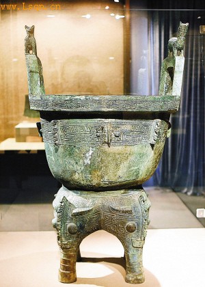《商代遗珍——江西新干大洋洲出土文物精品展》上展出的兽面纹鹿耳四足。