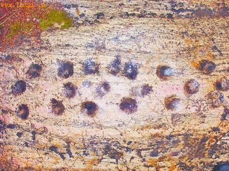据悉,马宝光是第一个在方城发现岩画“天书”的人。2月27日上午,他来到方城县考古时,在清河乡沙庄、张庄一带山冈上发现一片裸露的岩石,上面凿刻着几十处圆形凹穴,有单个凹穴、双连凹穴、三连六连凹穴及多穴组合图案,这些凹穴深浅不一、排列有序。他当时就觉得这和具茨山“天书”很像。