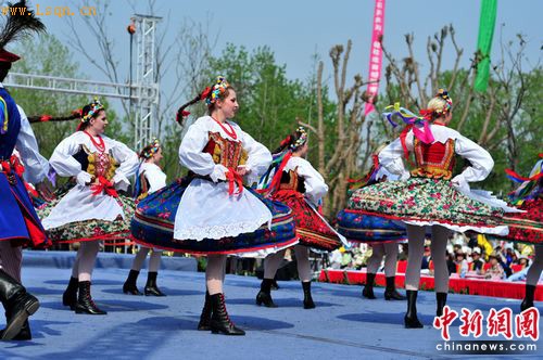 来自波兰的“西里西亚人”民间艺术团,表演了波兰民间舞《克拉克维亚克舞曲》。团队成员Pawel介绍,这个舞蹈的起源与军队有关,特点是服装艳丽、舞姿动感,曾在2008年参加过北京奥运会的文艺表演。