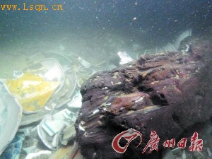 “南澳Ⅰ号”明代古沉船部分隔舱板已在水底现身,各组隔舱板之间满是一摞摞码放整齐的文物。记者昨日从广东省文物局获悉,由广东省文物考古研究所与国家水下文化遗产保护中心共同实施的“南澳Ⅰ号”水下考古项目已经取得阶段性进展,水下考古队在抽取沉船上层覆盖淤积物的过程中,已经清理出相互平行的3组木质沉船隔舱板,隔舱板之间间隔约为1米,这些间隔就是古船装载货物的空间。昨日,在发掘进入船舱内后,文物出水速度极快,昨日下午专家对已发现的“一号舱”进行打捞,结果让八吊篮文物从海底重见天日。