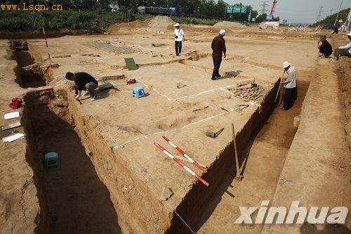 洛阳市文物局近日公布,孟津县送庄乡卅里铺村东南处的朱仓遗址发掘现场新发现两处东汉帝陵陵园遗址和两处大型墓园遗址。根据考古人员判断,两处帝陵遗址分别为东汉顺帝、冲帝的陵墓,两处大型墓园遗址分别为两座帝陵的陪葬。据专家介绍,此发现将填补我国东汉陵寝制度的实证空白,从目前发掘开的约1.2万平方米的遗址来看,其建筑布局的完整性、墙基保存的高度都前所未见。新华社发(张晓理摄)