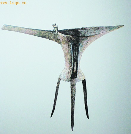 夏代束腰长流铜爵