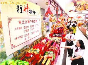 今天上午,东安市场的工作人员为端午专柜补起汇聚南北风情的九大品牌的三十余种货品,等待端午节前的客流高峰。白继开摄