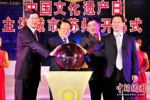 中新网苏州6月12日电(李克祥)2010年中国文化遗产日主场城市活动昨晚在苏州古胥门广场开幕。今天迎来的2010年中国文化遗产日以“文化遗产在我身边”为主题,在文化遗产日前后,全国各地的文物、文化机构都将面向公众开展丰富多彩的文化活动。